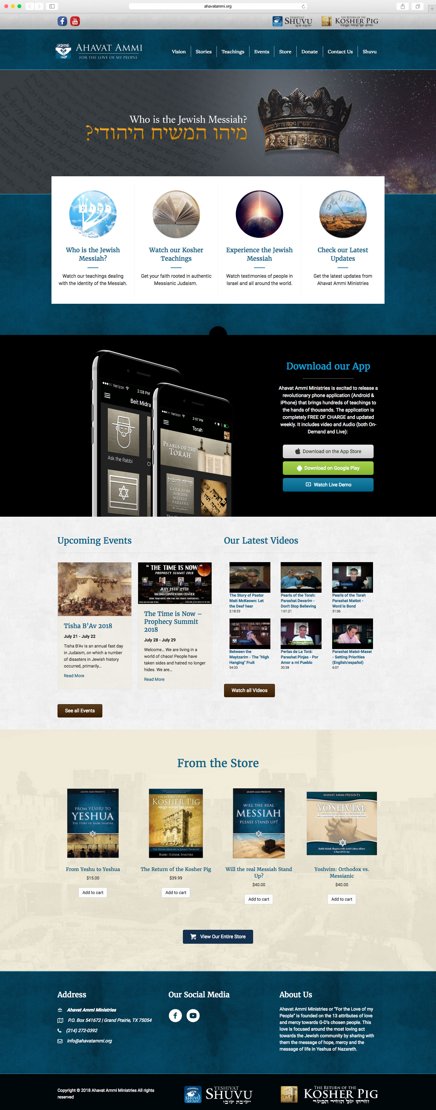 Ahavat Ammi Ministries is an Israeli organization that focuses on bringing the good news of Yeshua (Jesus) to the Jewish people. The website was created with Wordpress using Beaver Builder and Beaver Themer. It has an integration with Woocommerce for the E-Commerce functionality and The Events Calendar to display the different events during the year.