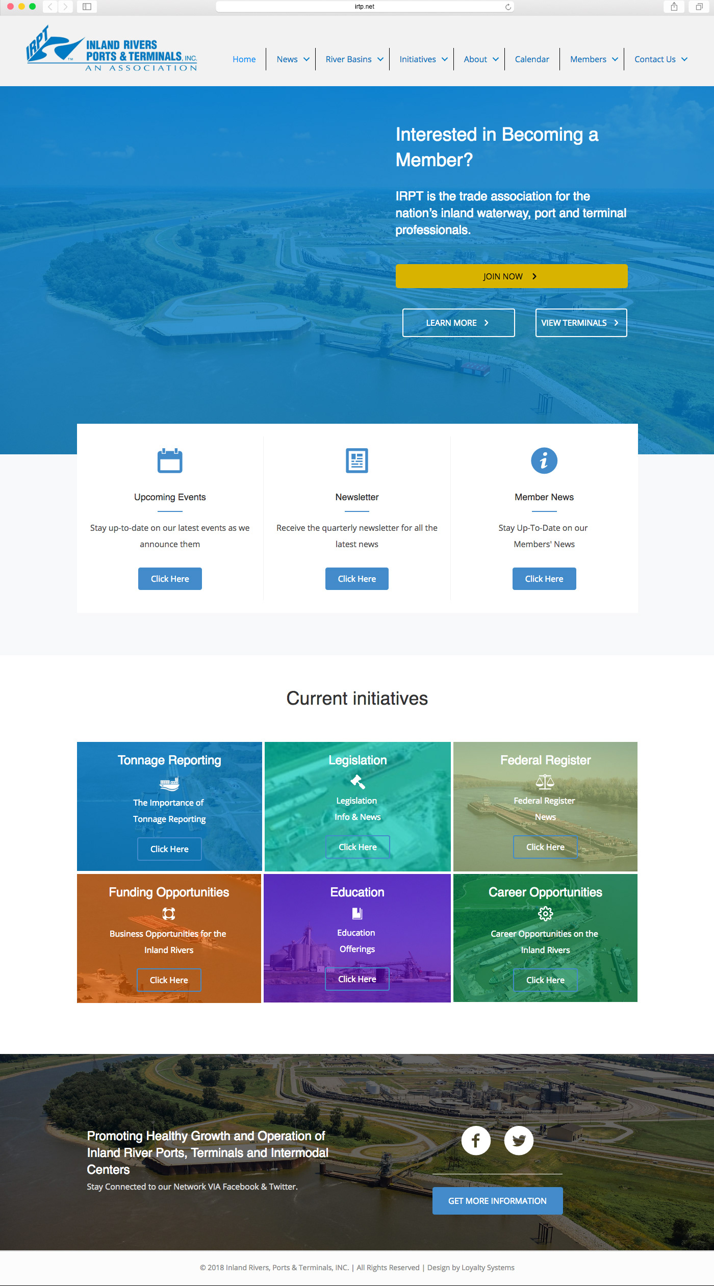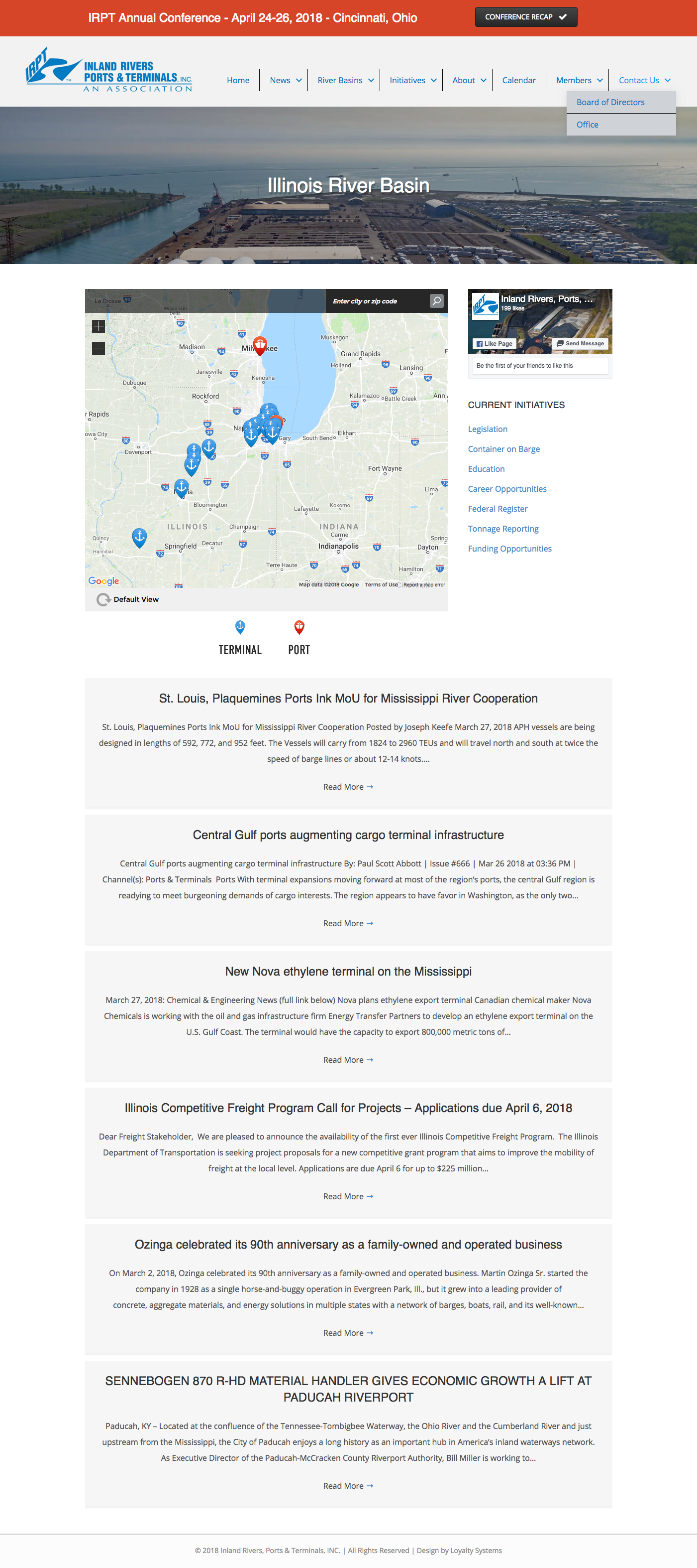 IRPT wanted to create a simple but functional website to display information in different sections. This website was built on Wordpress with Beaver Builder and Beaver Themer using a special mapping plugin to indicate the ports and terminals on each region.